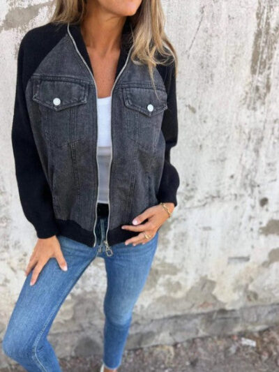 Veste femme bi-matière denim et maille style casual chic tendance